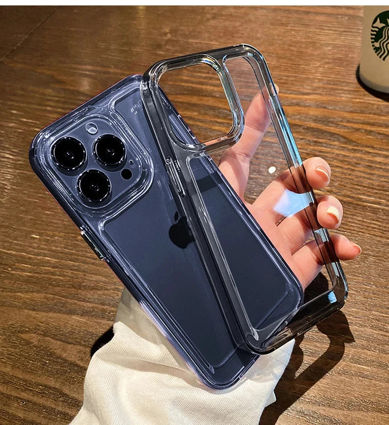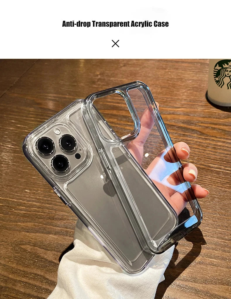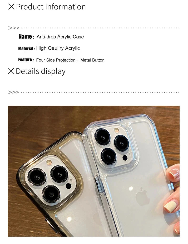 Coque Transparente Acrylique avec Boutons Métalliques — Compatible iPhone 11 à 17 Pro Max PhoneFit