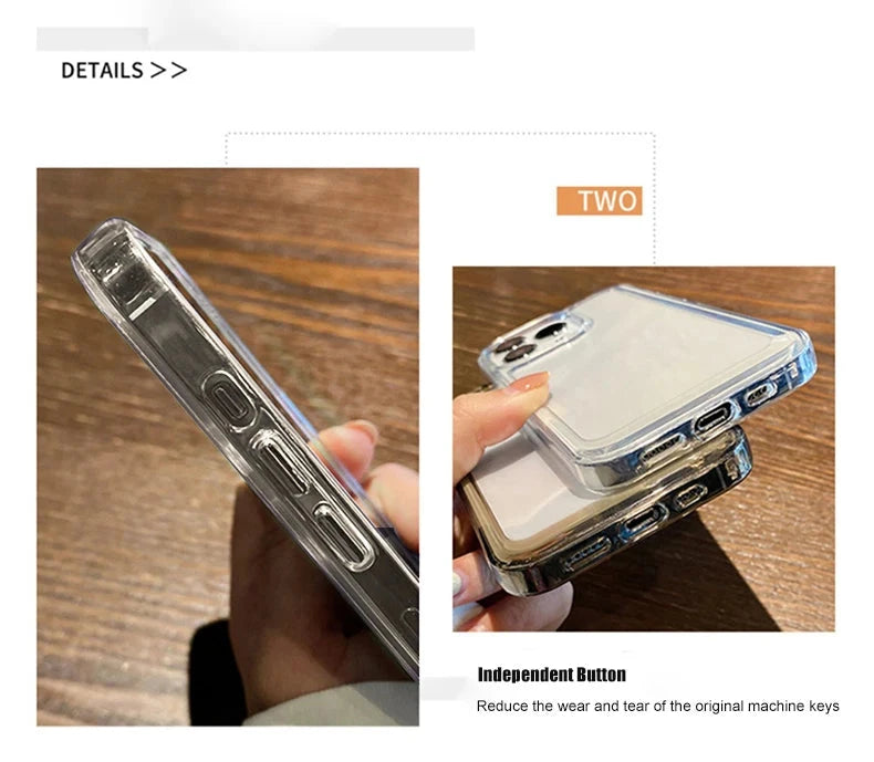 Coque Transparente Acrylique avec Boutons Métalliques — Compatible iPhone 11 à 17 Pro Max
